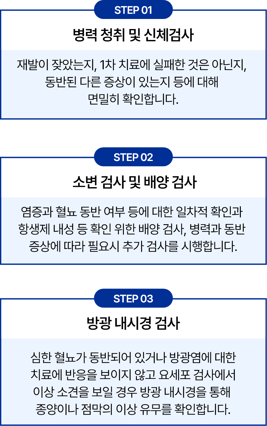 단순 방광염의 경우 항생제를 처방하여 일반적으로 72시간