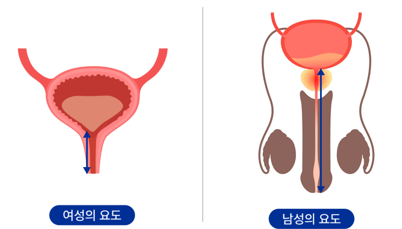 여성의 경우 요도가 짧고 요도 입구가 질과 항문에 가까워 세균이 쉽게 침입할 수 있기 때문입니다.