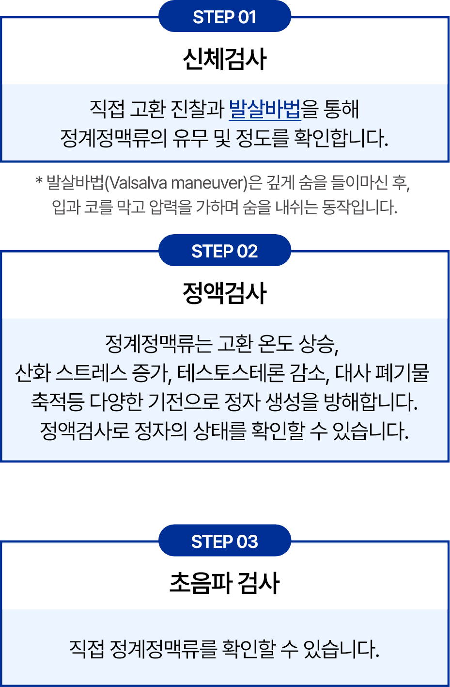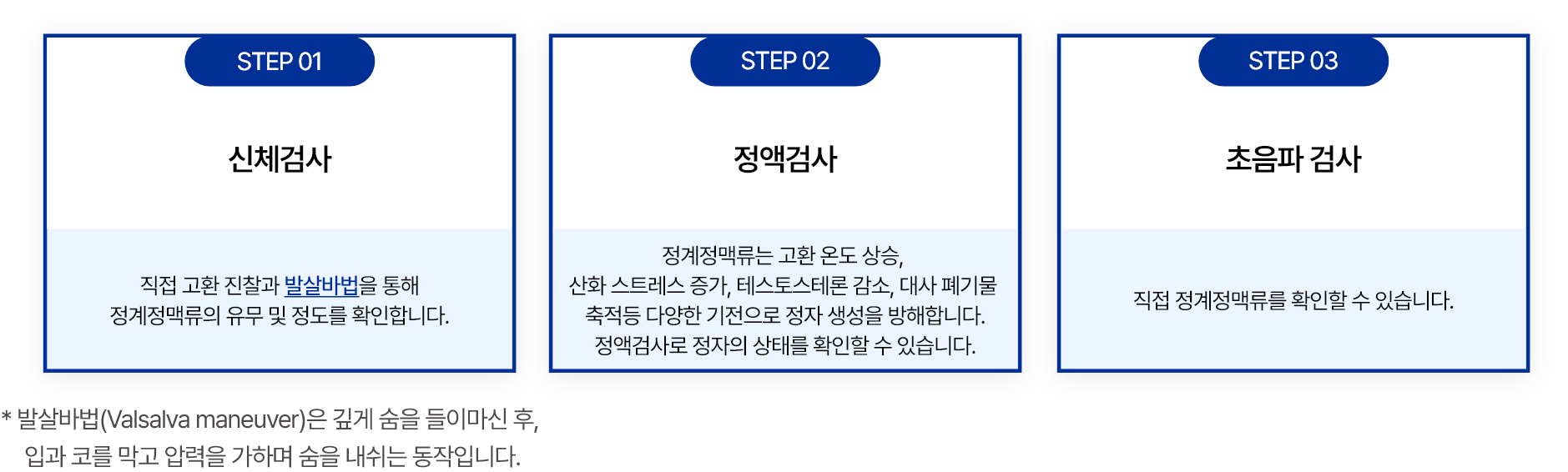 정계정맥류는 고환 상부의 정맥혈관이 비대하게 확장되어 발생하는 질환입니다.